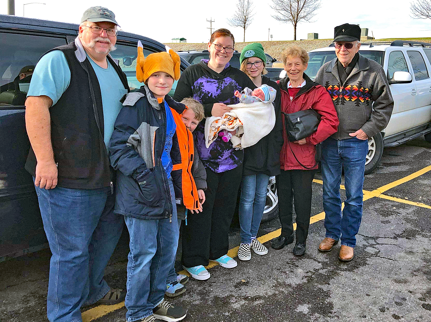 One final photo: (most of) The Family after Skeeter was born in 2019: Me, Lugnut, ‘Stache, DD#1, Toots, Sarah, Dad. And Skeeter, of course!