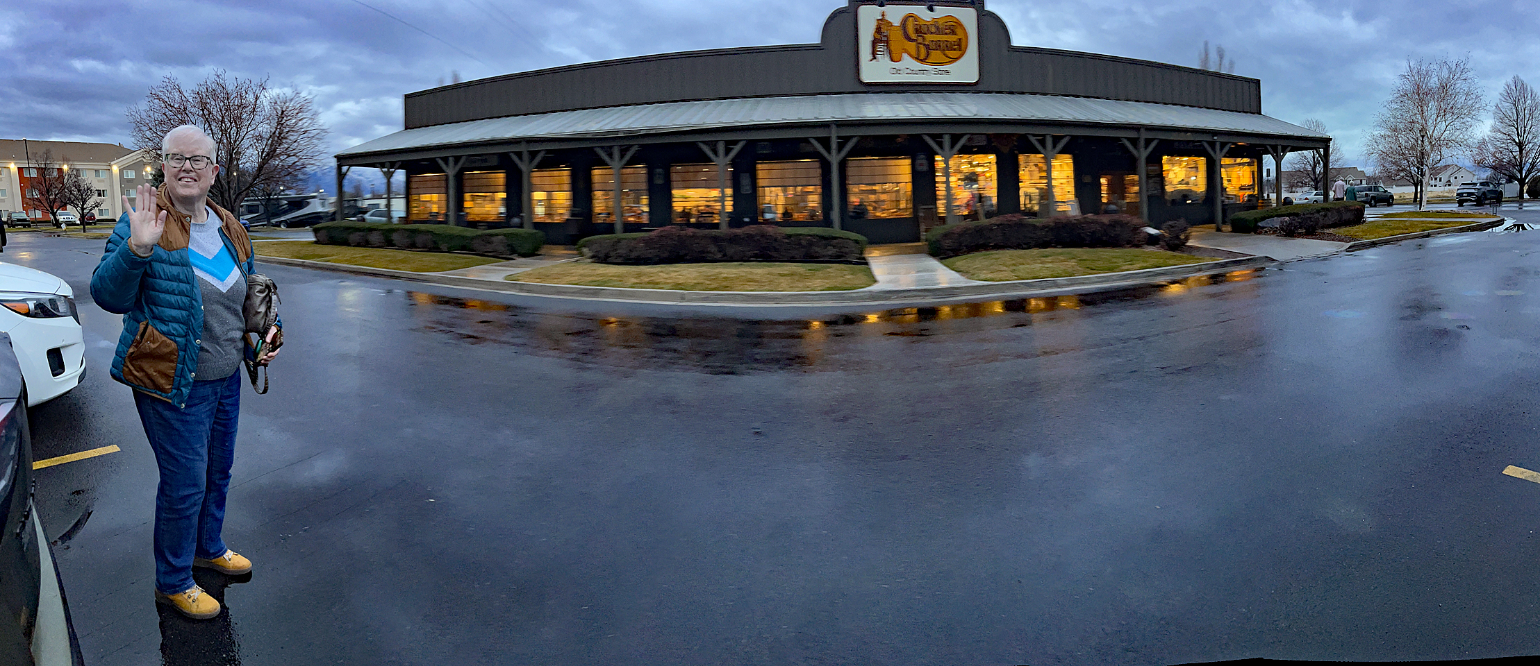 We rolled into Springville, which is a suburb of Provo, Utah, a couple minutes past 5pm. We left our house and hit 10th Avenue South right at 7:30am, which is making pretty good time for 619 miles. The drive through SLC wasn’t too bad. There were a fair number of cars, but relatively few trucks, and it was a nice drive even though it was raining. It stopped a bit after we cleared the southern edge of SLC. After checking in we went to dinner!