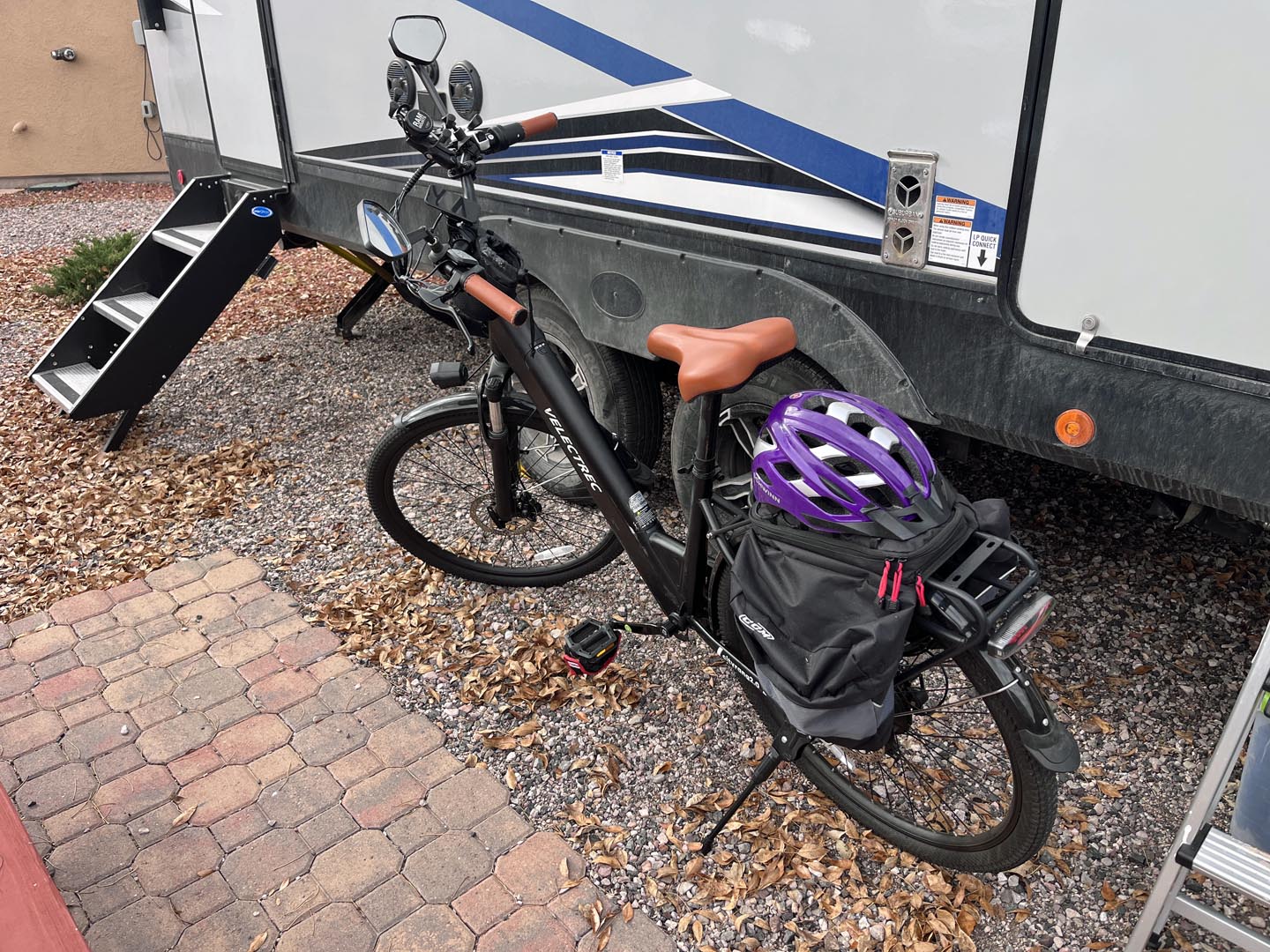 I did take my first ride. It was about four miles to Tuzigut Nat’l Monument (five miles by the bike’s dash but it is off from my iPhone’s GPS a bit). I got a lock to “leash” it to the pet leash loops on the trailer, and a cover is on the way. Now if I only had the keys to the battery…