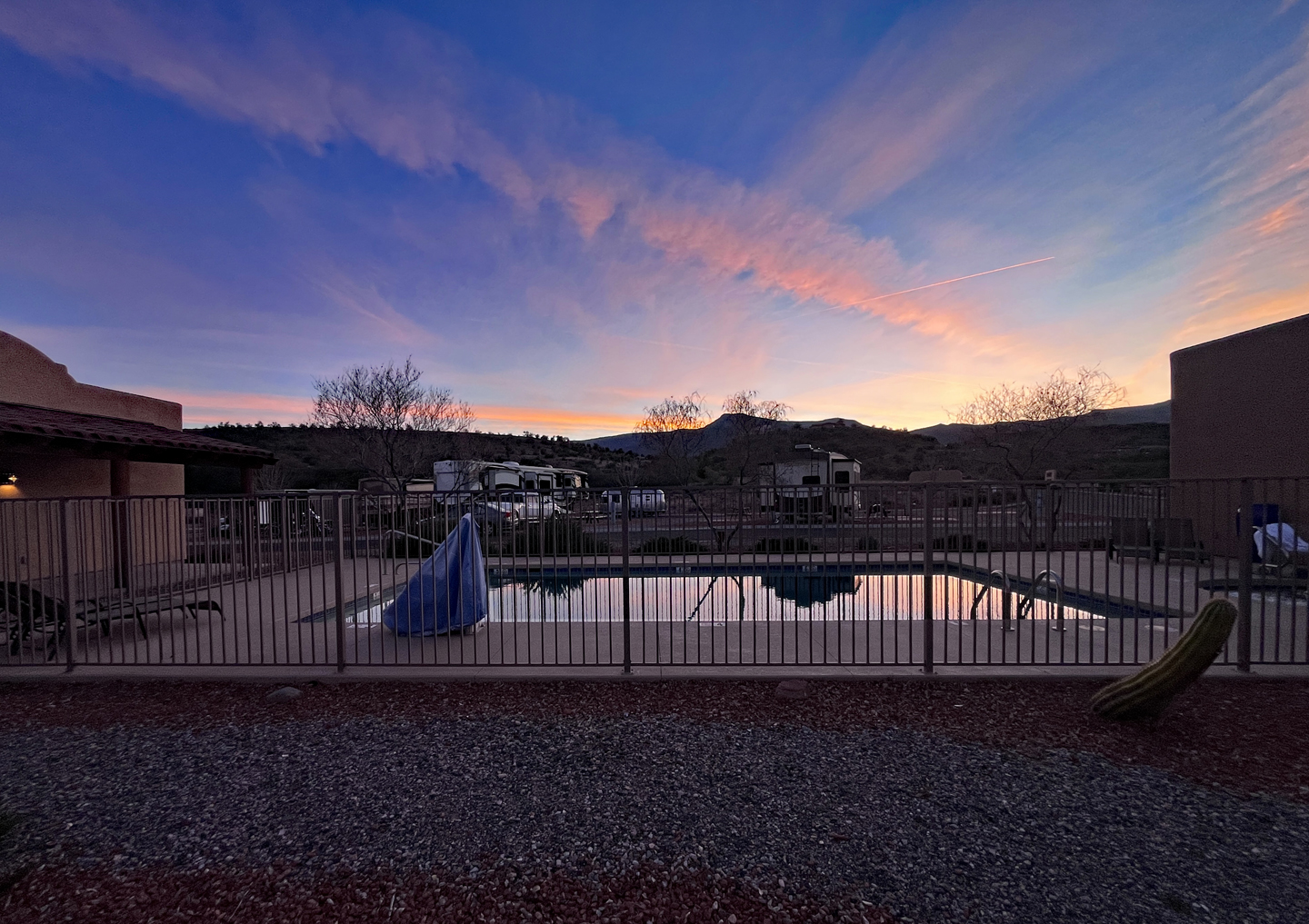 And a nice sunset over the pool. We had a lot of sunsets painting the sky our first year down here. None of the subsequent years have matched it.
