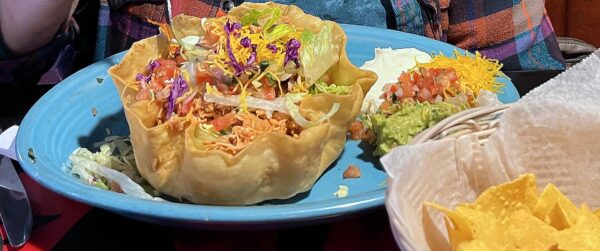 The Dailylife Wife decided to be chill about eating out, and had a non-spicy Taco Salad, with chicken. No distress!