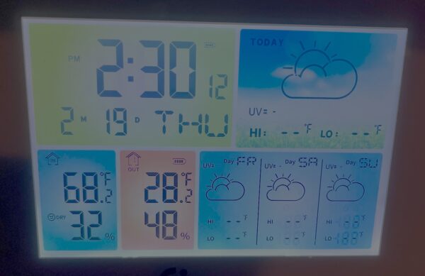 It was cool and rainy. I did see the outside temperature at 27F, but it warmed up a degree. This is furnace trouble temps, as well as whyI bought the heated water hose.