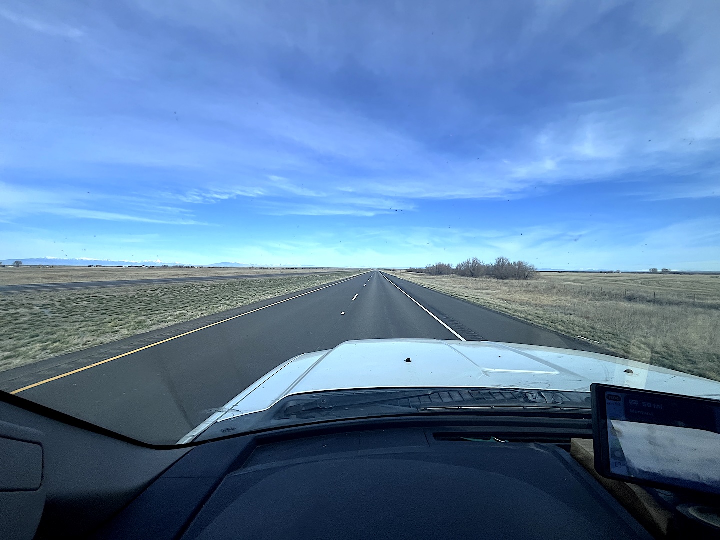 On the plains north of Idaho Falls. Straight and flat.