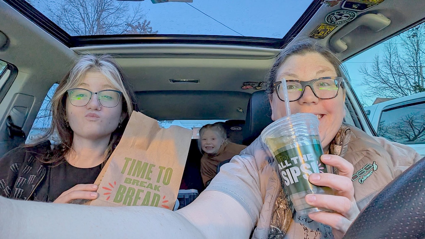 Toots, Skeeter and DD#1 sampling the goods at the new Panera, before I get a chanceā¦(photo by DD#1)…