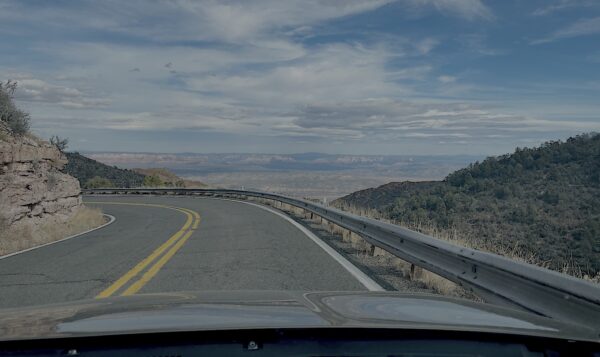 From back in early March, a few miles above Jerome, AZ. The bump on the horizon is the San Francisco P3eaks. Flagstaff is at the base of the peaks, some 40 miles away as the crow flies.