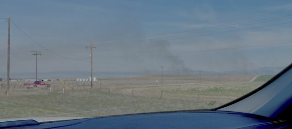 It was a farmer burning his field. Note the fuzziness of the photo. I “zoomed in digitally” on my camera. All you do when you “zoom” is enlarge the center of the photo. If you take a regular photo, you will get the exact same amount of detail or fuzziness when you crop it to this level, but you will also get a lot more photo to crop from, leaving lots of options.